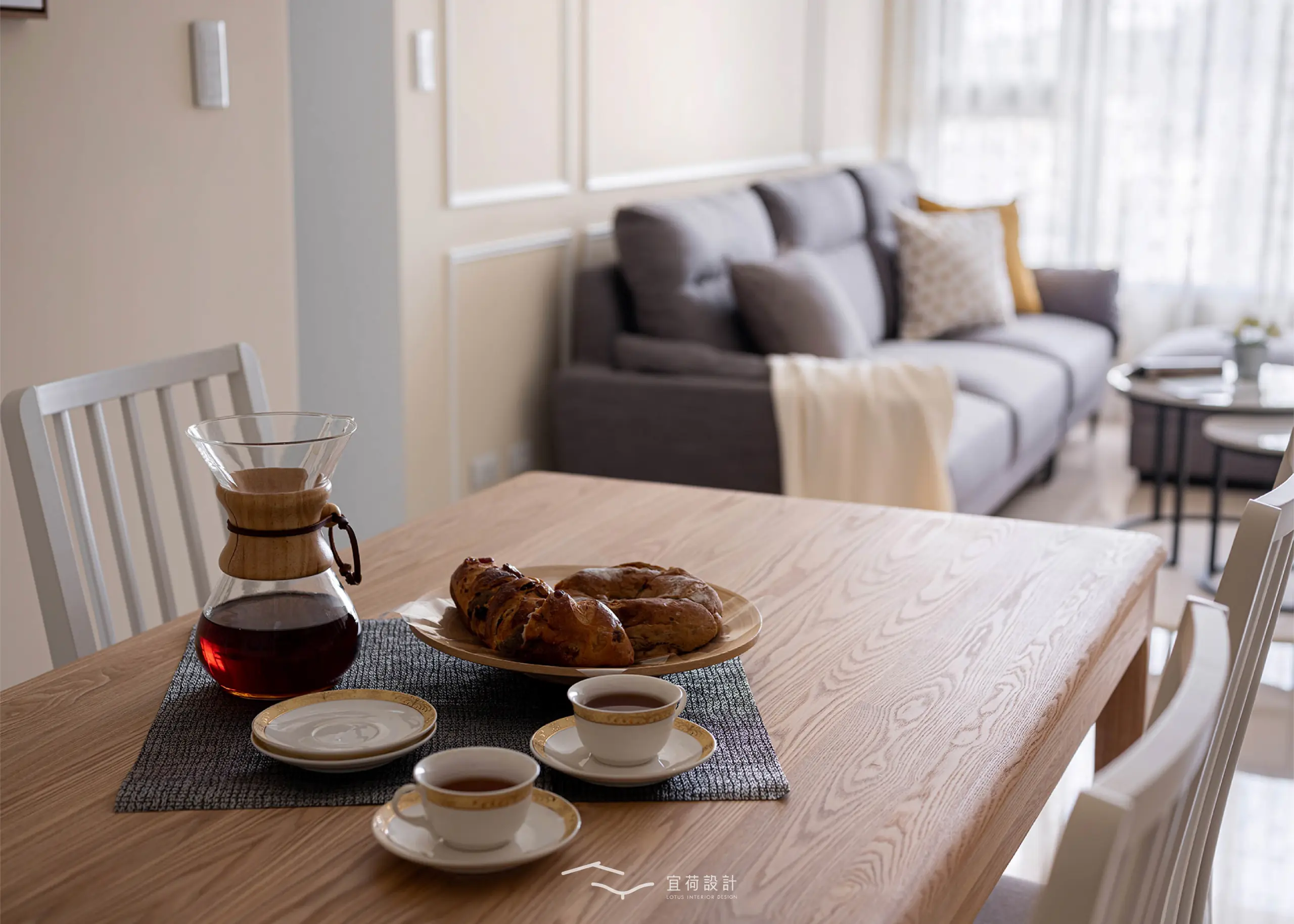 整體空間流露出一份不疾不徐的從容,讓一家人能在這片柔光之中,細細品味屬於家的節奏。